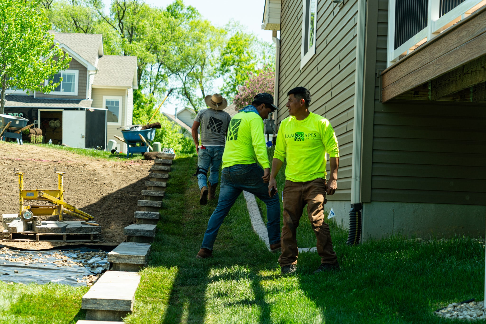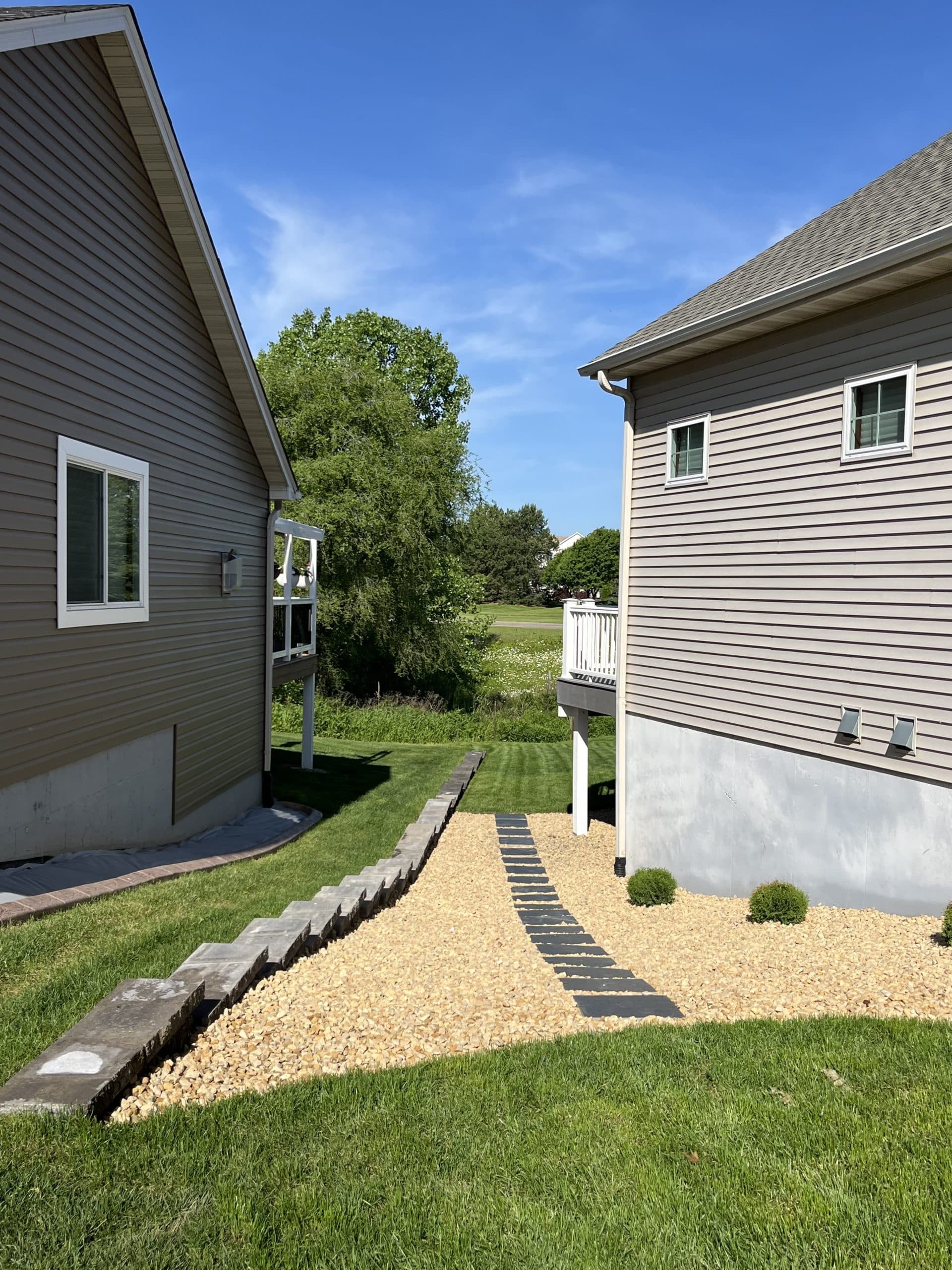 During construction, we discovered that a previously installed drain tile was incomplete, ending abruptly in the middle of the yard. Identifying this issue early allowed Landscapes Unlimited to extend the drain tile to the back of the yard, reducing the risk of frost heaving, flooding, and soil erosion.