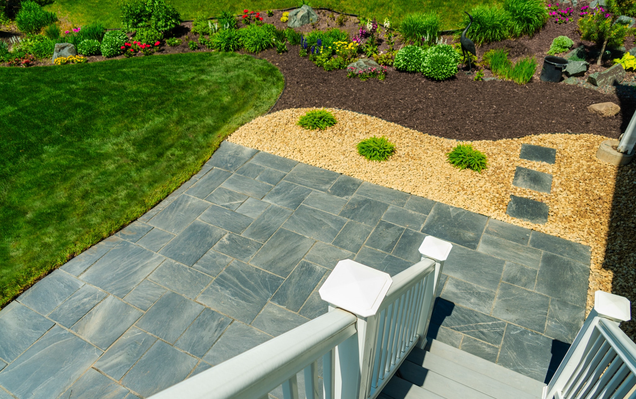 "Replacing the existing patio with the Buckingham slate, as shown in the photo you left would really tie the back area into the paver side and the deck."